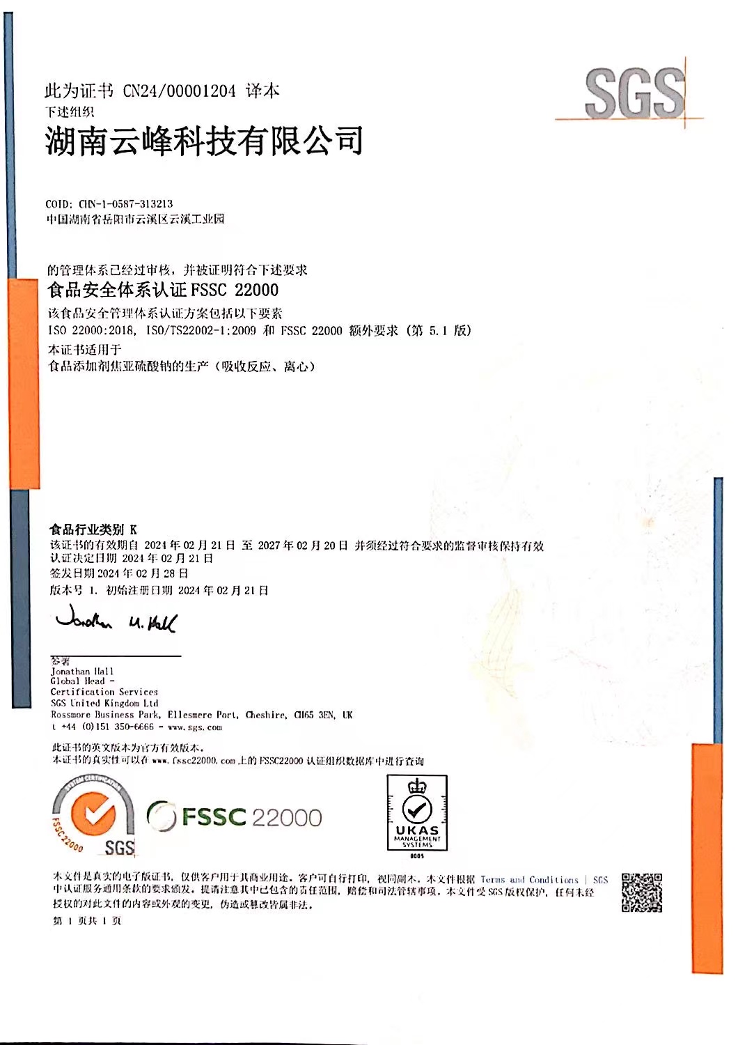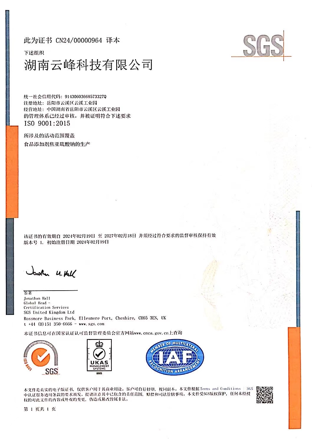 湖南云峰科技有限公司(以下簡(jiǎn)稱云峰科技),是由長(zhǎng)沙湘岳化工責(zé)任有限公司全額投資以生產(chǎn)焦亞硫酸鈉、亞硫酸鈉等亞硫酸鹽為主營(yíng)業(yè)務(wù)的高科技企業(yè),具有六十多年的生產(chǎn)歷史,同時(shí)也是焦亞硫酸鈉的國(guó)家標(biāo)準(zhǔn)制定參與者。在行業(yè)內(nèi)具有很大的影響力。現(xiàn)有職工八十余人。具有優(yōu)良的經(jīng)營(yíng)管理團(tuán)隊(duì)和成熟的生產(chǎn)技術(shù)隊(duì)伍。由多位在化學(xué)、化工行業(yè)擁有豐富工作經(jīng)驗(yàn)的工程師及技術(shù)員團(tuán)隊(duì)組建而成,致力于亞硫酸鹽產(chǎn)品的研發(fā)、生產(chǎn)和銷售。2020年公司對(duì)生產(chǎn)設(shè)備、安環(huán)設(shè)施及工業(yè)技術(shù)等進(jìn)行了大規(guī)模的升級(jí)改造,使焦亞硫酸鈉和亞硫酸鈉的生產(chǎn)工藝更加先進(jìn),技術(shù)更成熟,產(chǎn)品質(zhì)量更優(yōu)良。無(wú)論在生產(chǎn)工藝、設(shè)備、產(chǎn)品質(zhì)量、清潔生產(chǎn)、節(jié)能環(huán)保和員工素質(zhì)方面,均處于行業(yè)領(lǐng)先地位。公司的主導(dǎo)產(chǎn)品“云峰”牌焦亞硫酸鈉,歷史悠久,深受國(guó)內(nèi)外客戶信賴,產(chǎn)品遠(yuǎn)銷東南亞、歐美、非洲、南美洲等20多個(gè)國(guó)家和地區(qū),產(chǎn)品供不應(yīng)求。